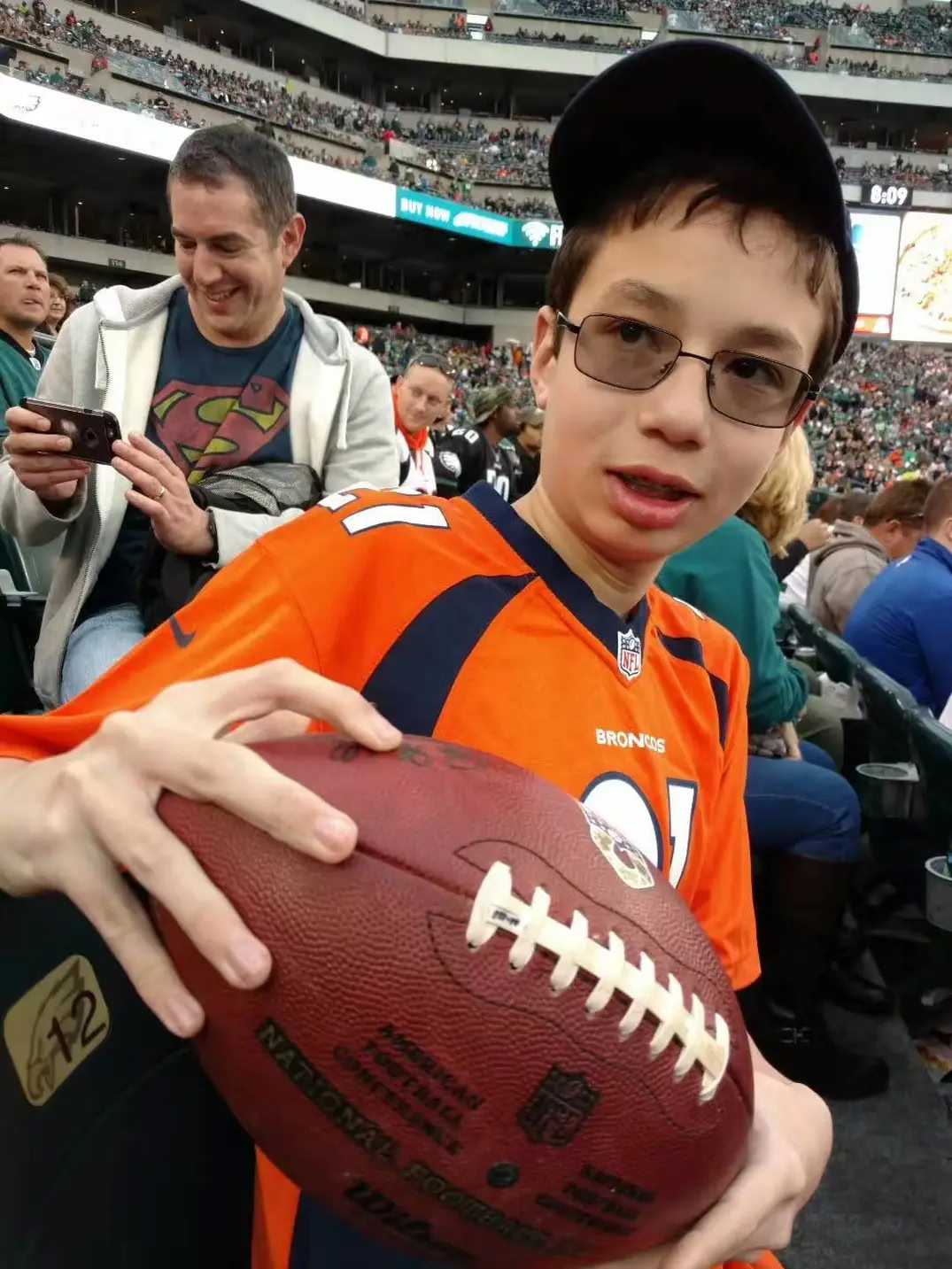 My brother's favorite picture holding the late Demarius Thomas' touchdown football in the 2017 NFL Season
