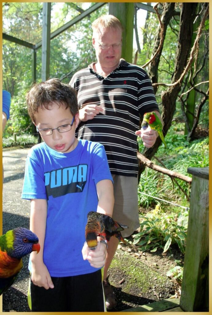 My brother feeding birds at Philadelpha Zoo
